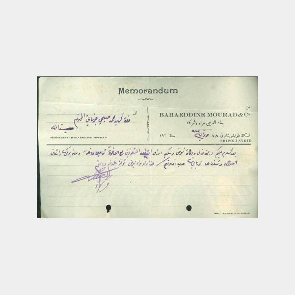 1929 Suriye Tripoli Ticari Memorandum Belge