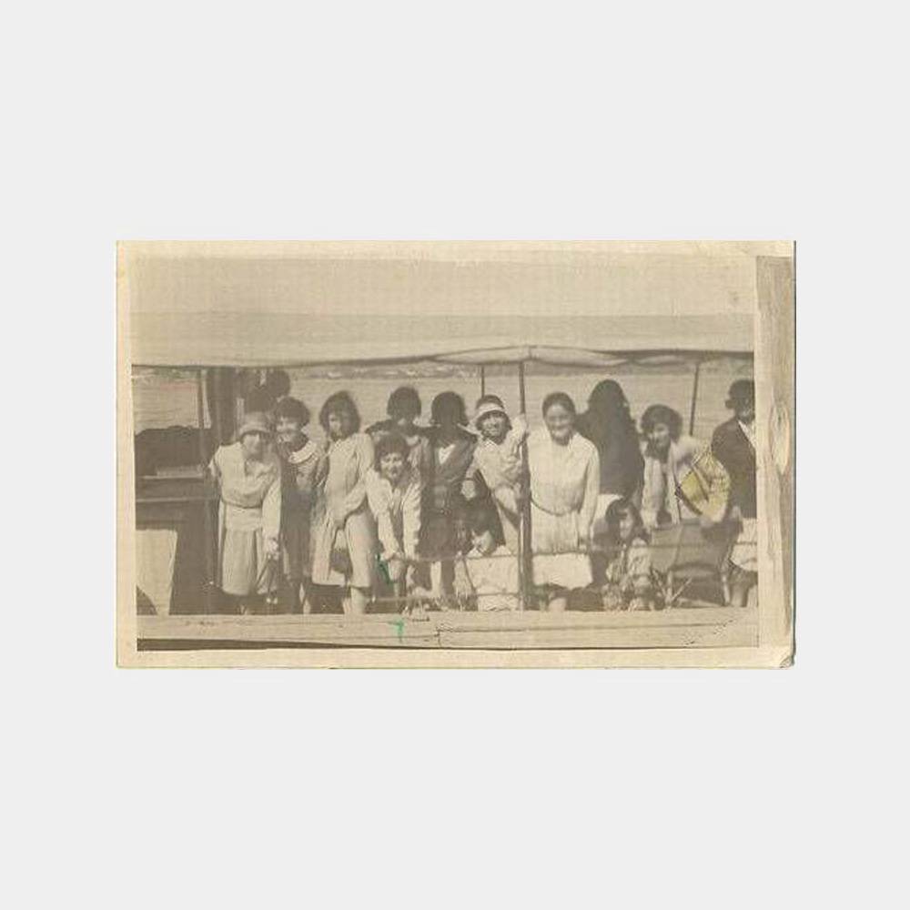 1929 İstanbul Tarabya Nil yatı gemisinde genç kızlar yaklaşık 15 kişi toplu foto , 2 okul mezuniyet gezisi olabilir