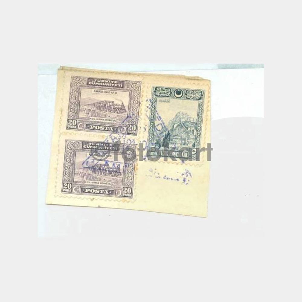 Bir fragman parçası üzerinde Edirne-İstanbul ambulant tren posta damgası.