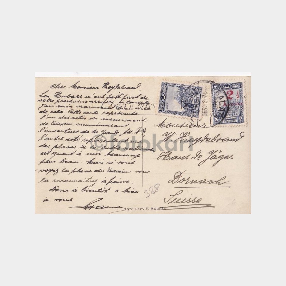 Arkası yazılı, postadan geçmiş değerli kart. 12.09.1930 tarihli.