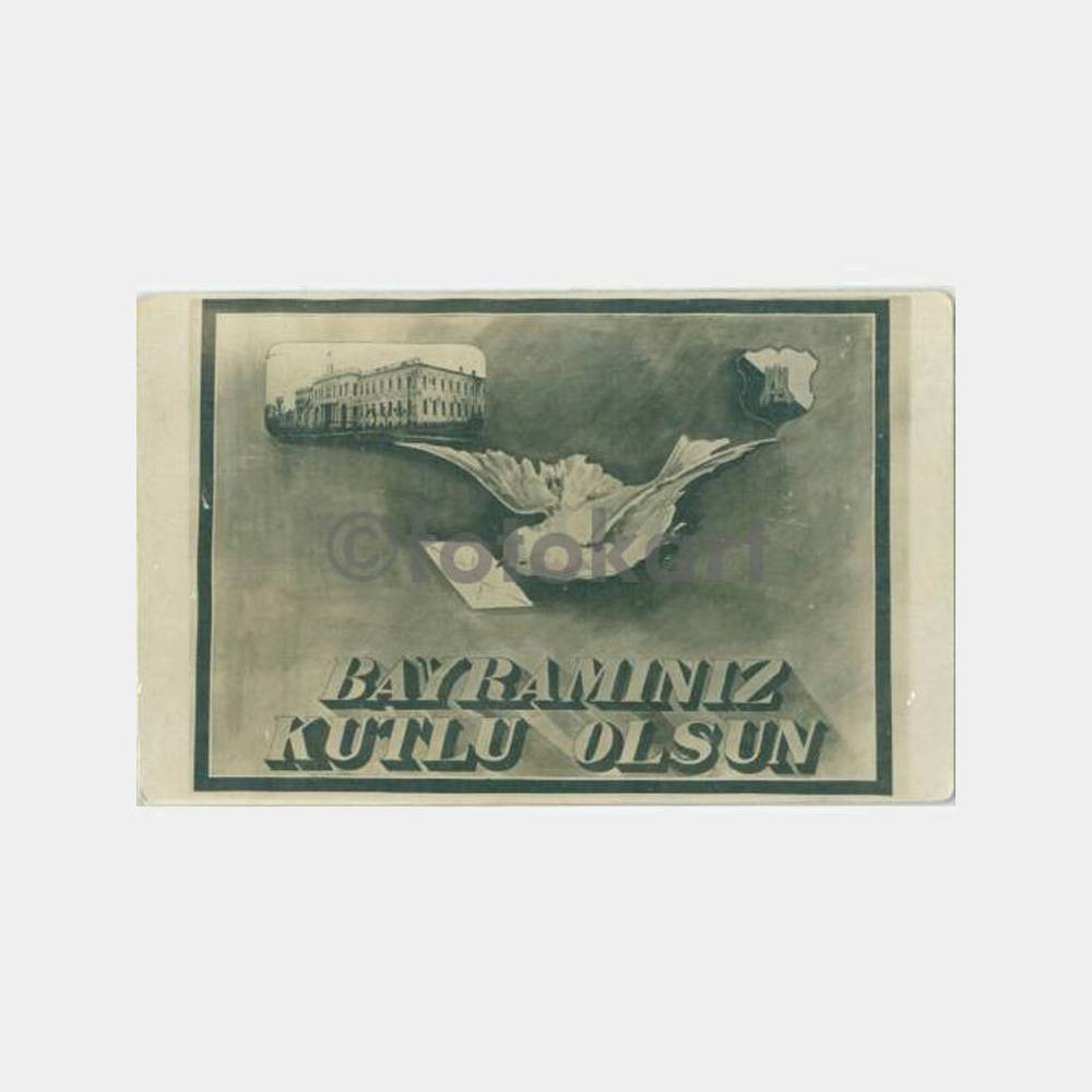 14 x 9 cm ebadında arkası yazılı fotoğraf-üzerinde okul amblemi baskısı var