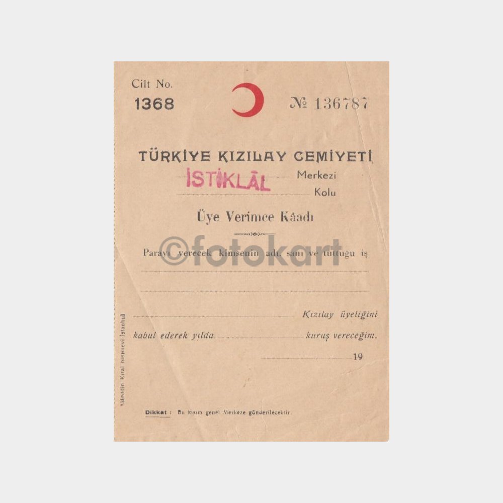 11 x 15 cm ebadında, koleksiyon amaçlı kızılay belge.