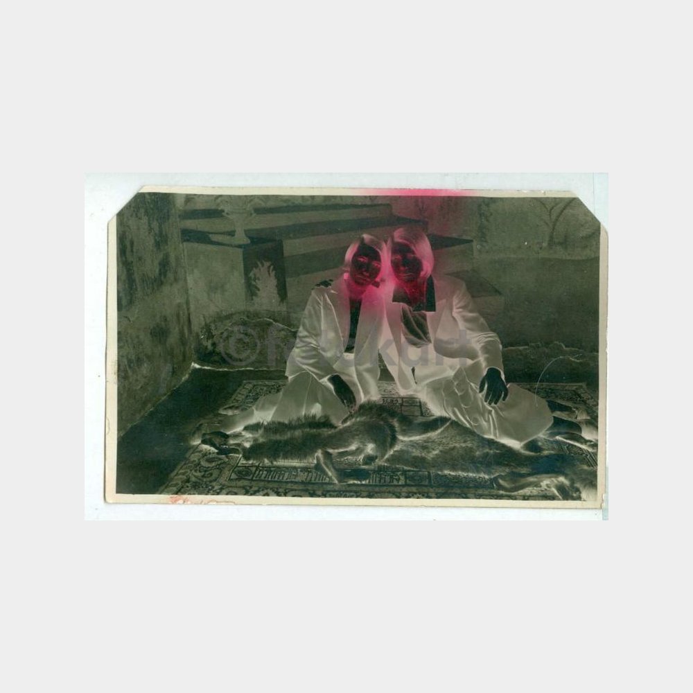 14 x 9 cm. ebadında arkası yazısız fotoğraf. Kızların yüzü kırmızı renk boyalı.