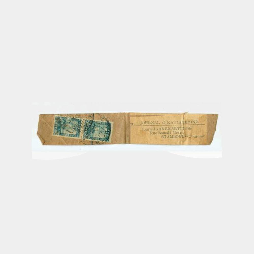 17 x 3 cm ebadında , Yunanistan’dan İstanbul’da bulunan Anexartitos gazetesi, asmalı mescit cad gönderilen adresli gazete etiketi