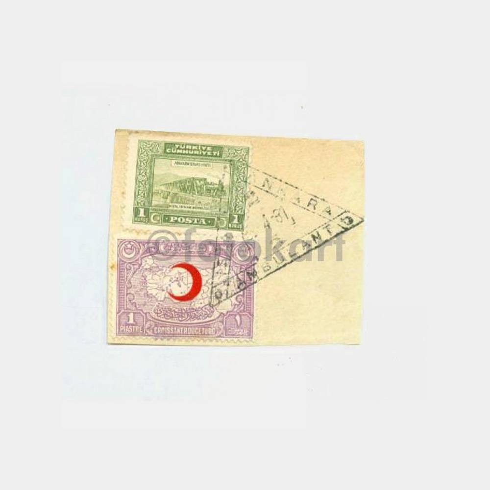 Bir fragman parçası üzerinde üçgen şeklinde ambulant-tren posta damgası