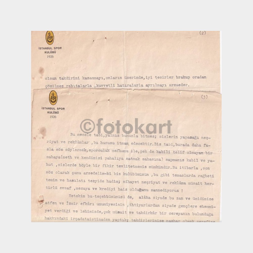 21 x 32 cm ebadında, daktilo yazılı İstanbulspor armalı baskılı. 2 sayfa.