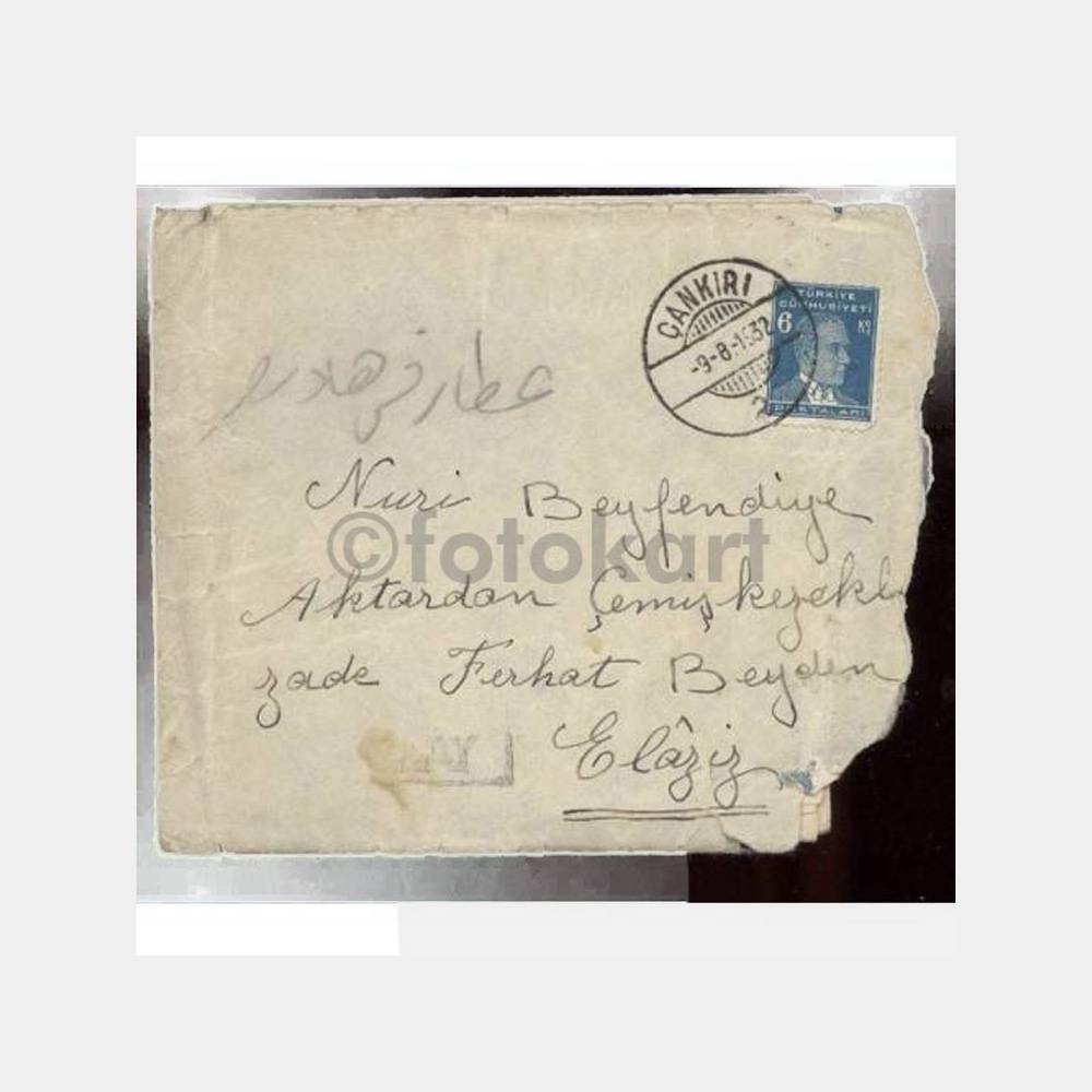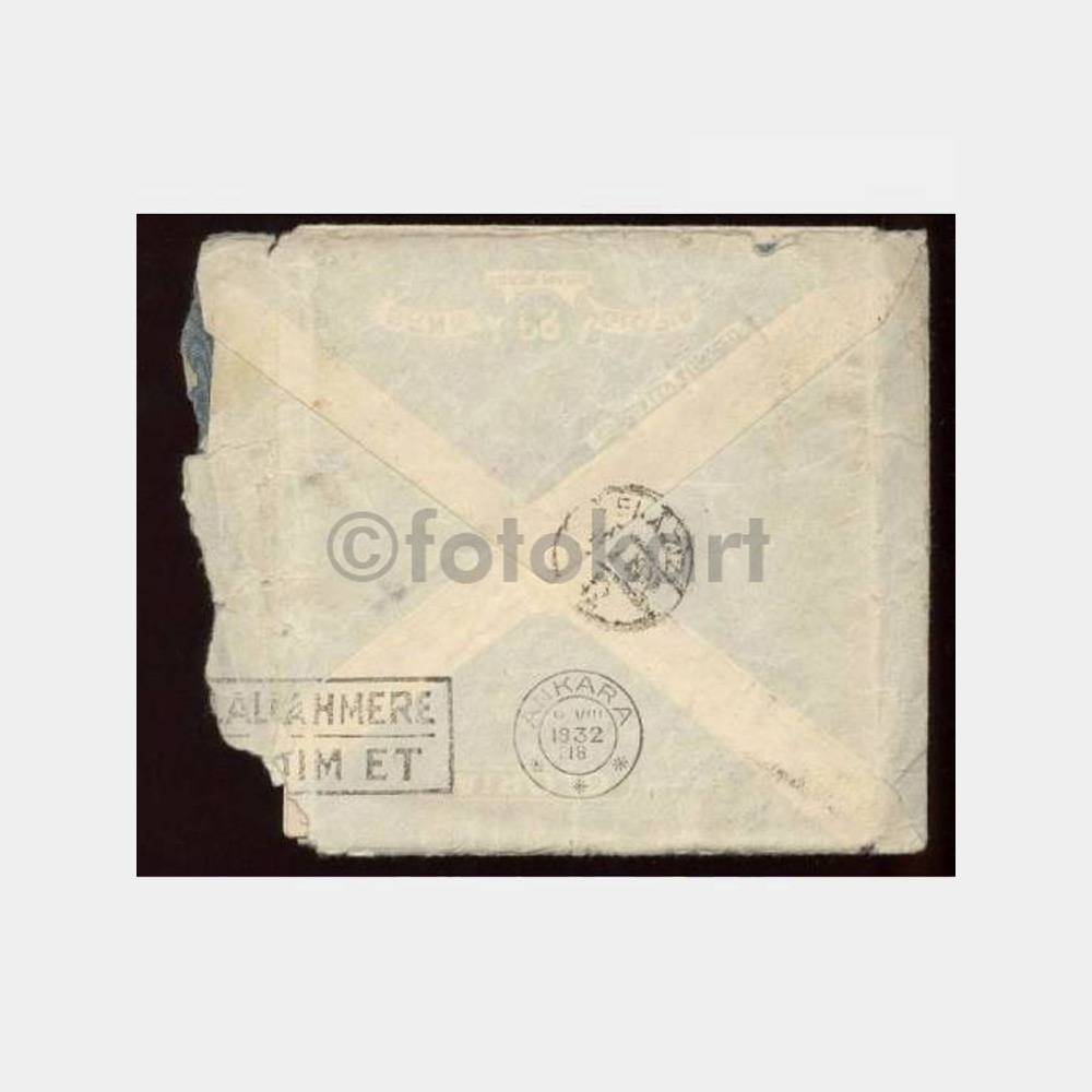 arkası Hilaliahmere yardım et kaşesi ve Ankara 9. 8. 1932 ve Elaziz damgaları var