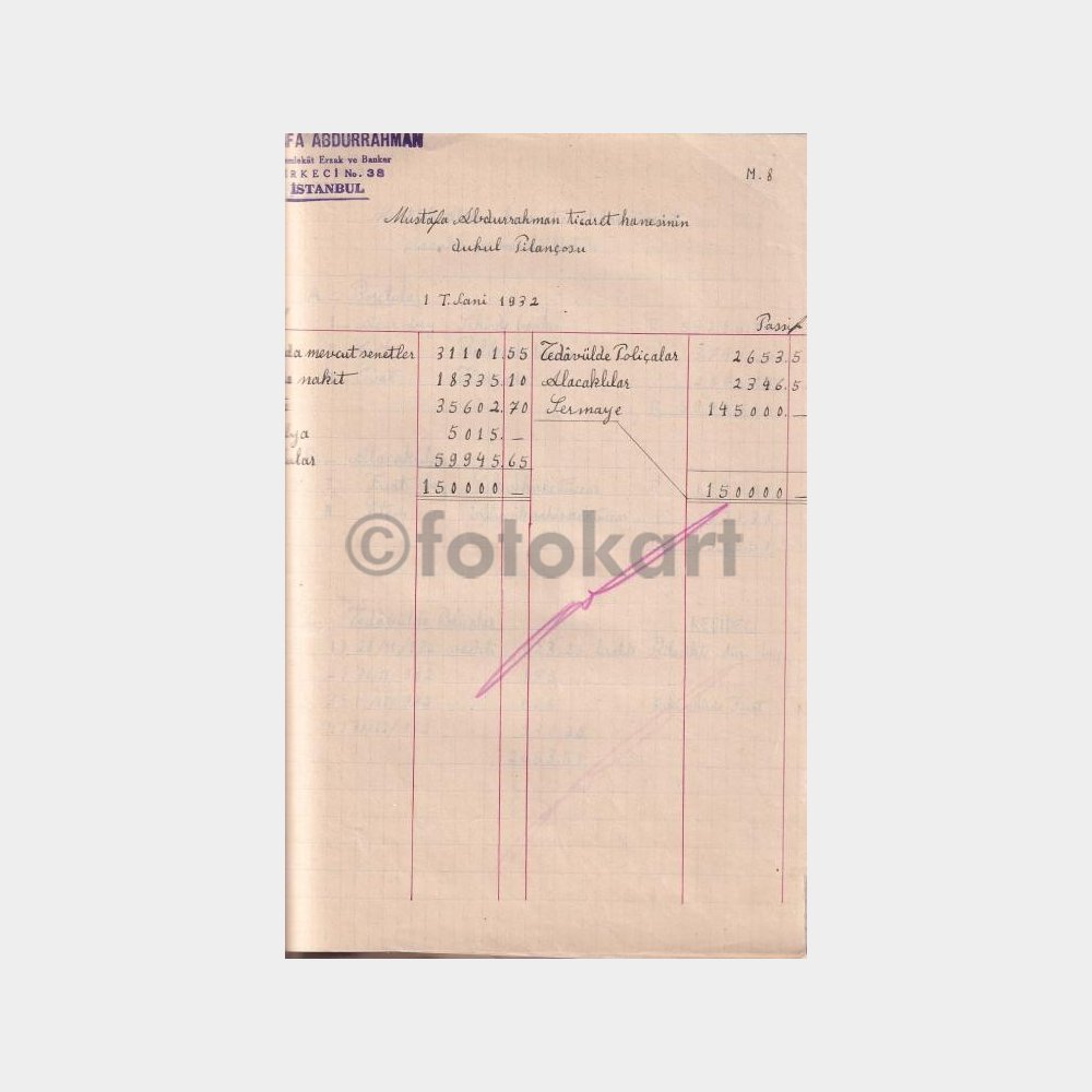 Mustafa Abdurrahman-Sirkeci Müstemlekat erzak banker. 65 sayfa belge.