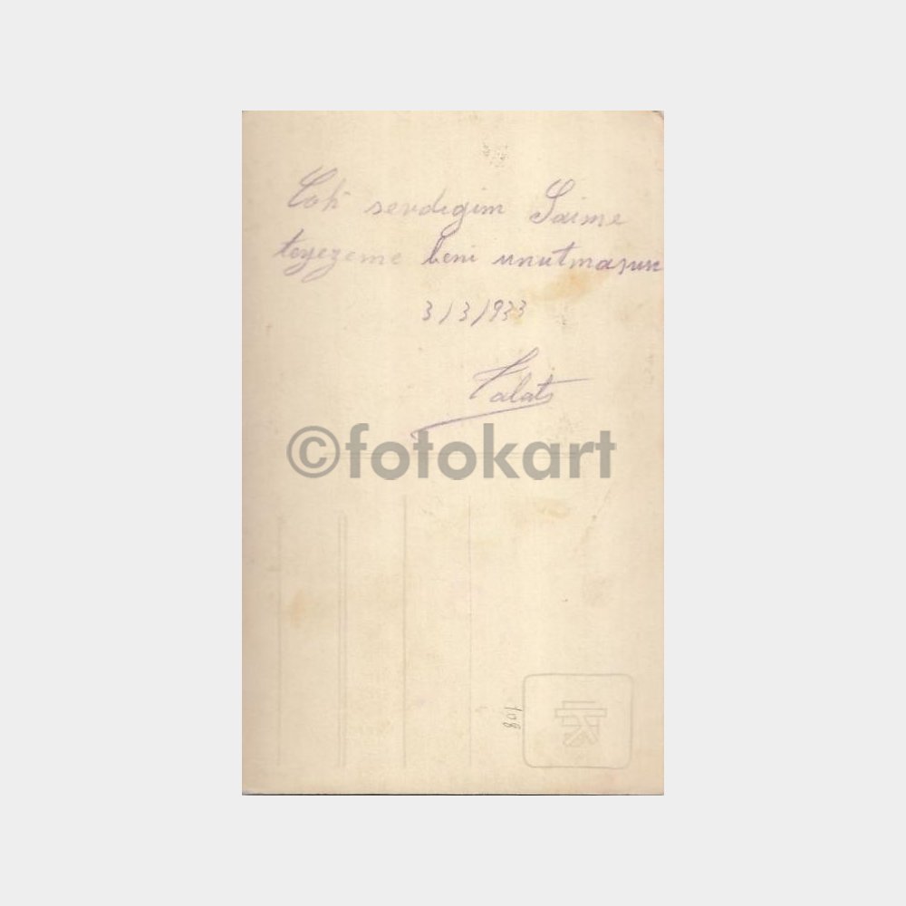 14 x 9 cm ebadında, arkası yazılı, Adana en önemli fotoğraf stüdyolarından Foto Raşit Zeki’nin çok değerli belgesel fotoğrafı.