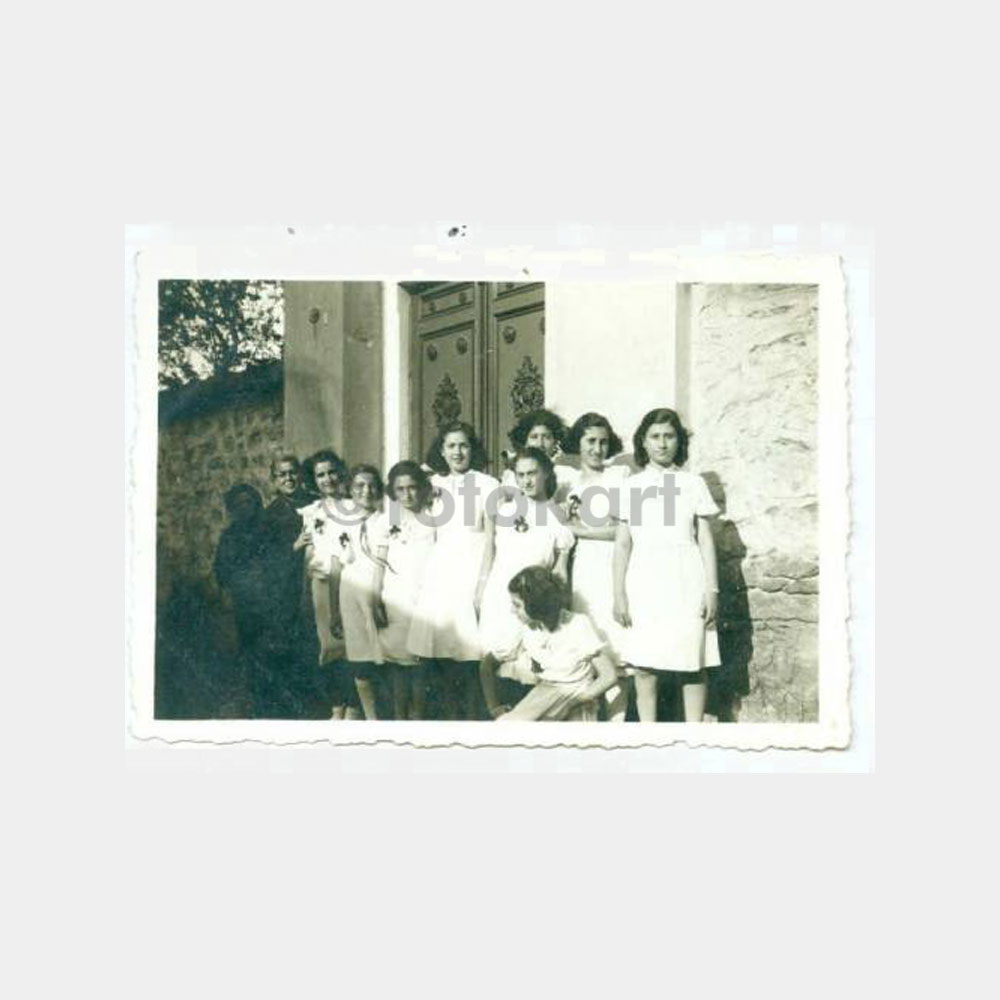 9 x 6 cm ebadında, albümden çıkma 3 adet fotoğraf. Resimde okuldan mezun olan kız öğrencilerin üzerinde Ermenice yazılı şerit var.