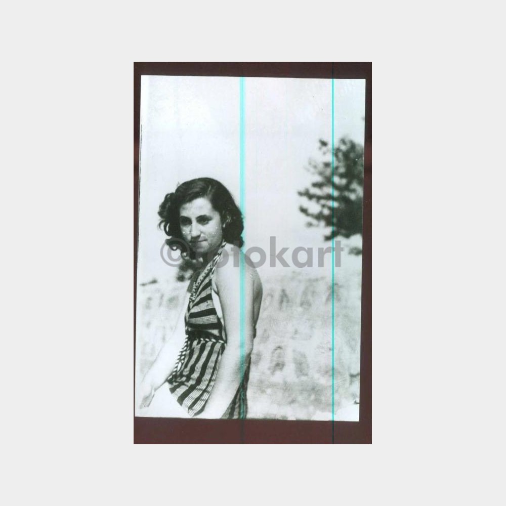 10 x 15 cm ebadında, arkası yazısız fotoğraf, dönemin mayo modelini yansıtmaktadır.