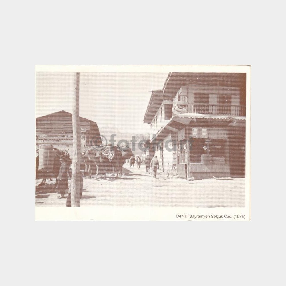 1935 Denizli Çaybaşı Caddesi Reprodüksiyon Baskı Tebrik Kartı