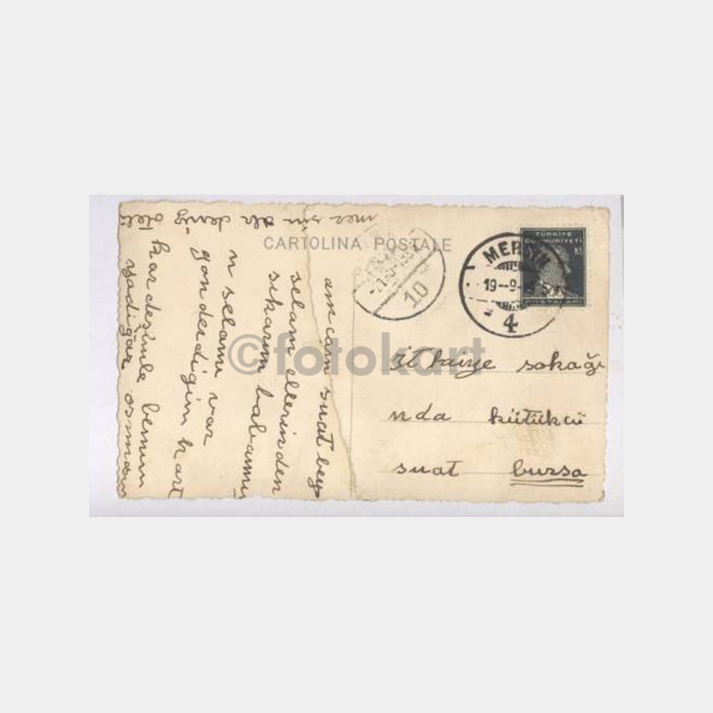 Arkası ptt Mersin 19.09.1935 tarihli posta damgalı ve Bursa varışlı