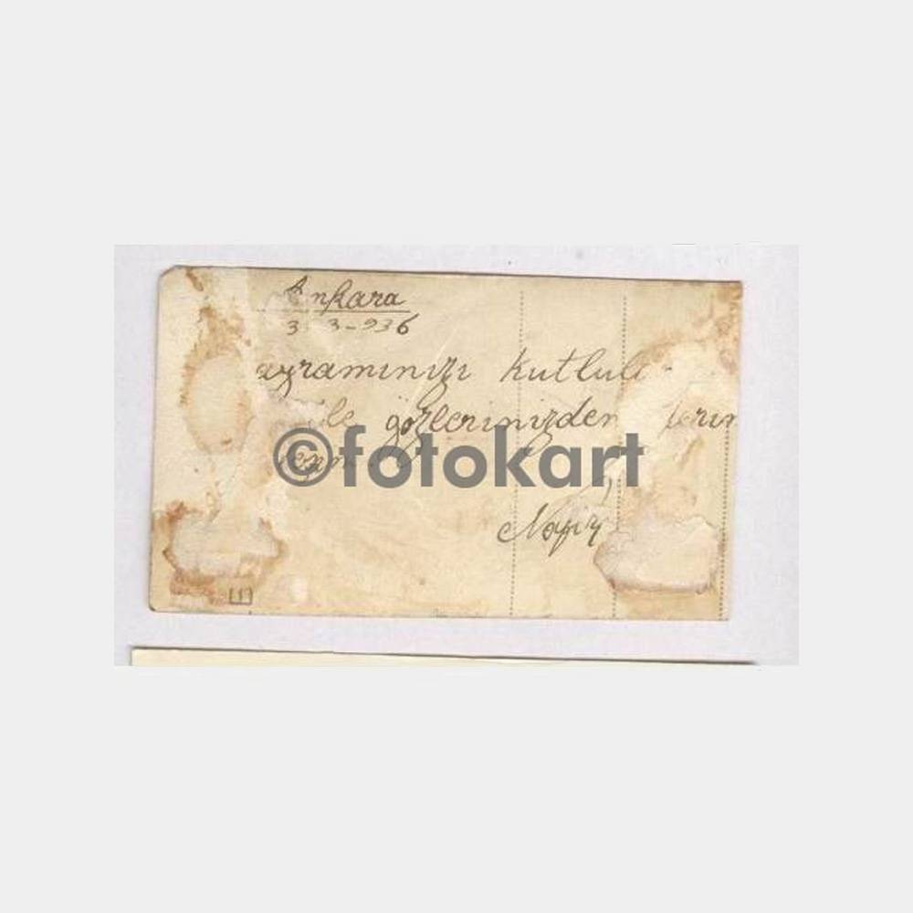 8,5 x 4 cm tebrik fotokart, arkası albümden alınma