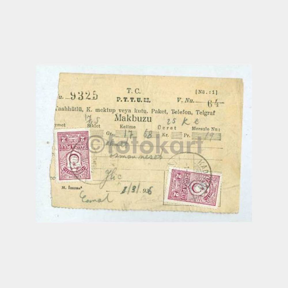 Makbuzun üzerinde Kadıköy posta damgası var 1.9.1936 tarihli