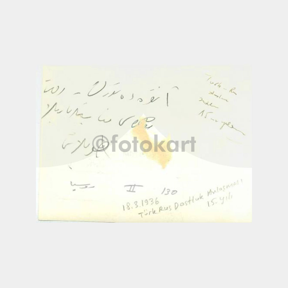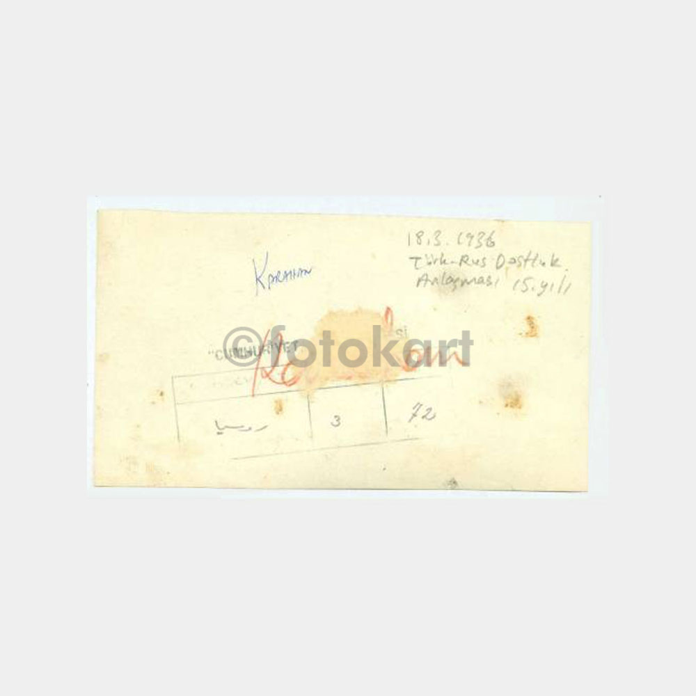 12 x 8 cm ebadında, arşiv fotoğrafı. Arkasında yazısı var. Moskova’da 18.3.1936 tarihinde verilen yemek fotoğrafı. 2 adet foto.