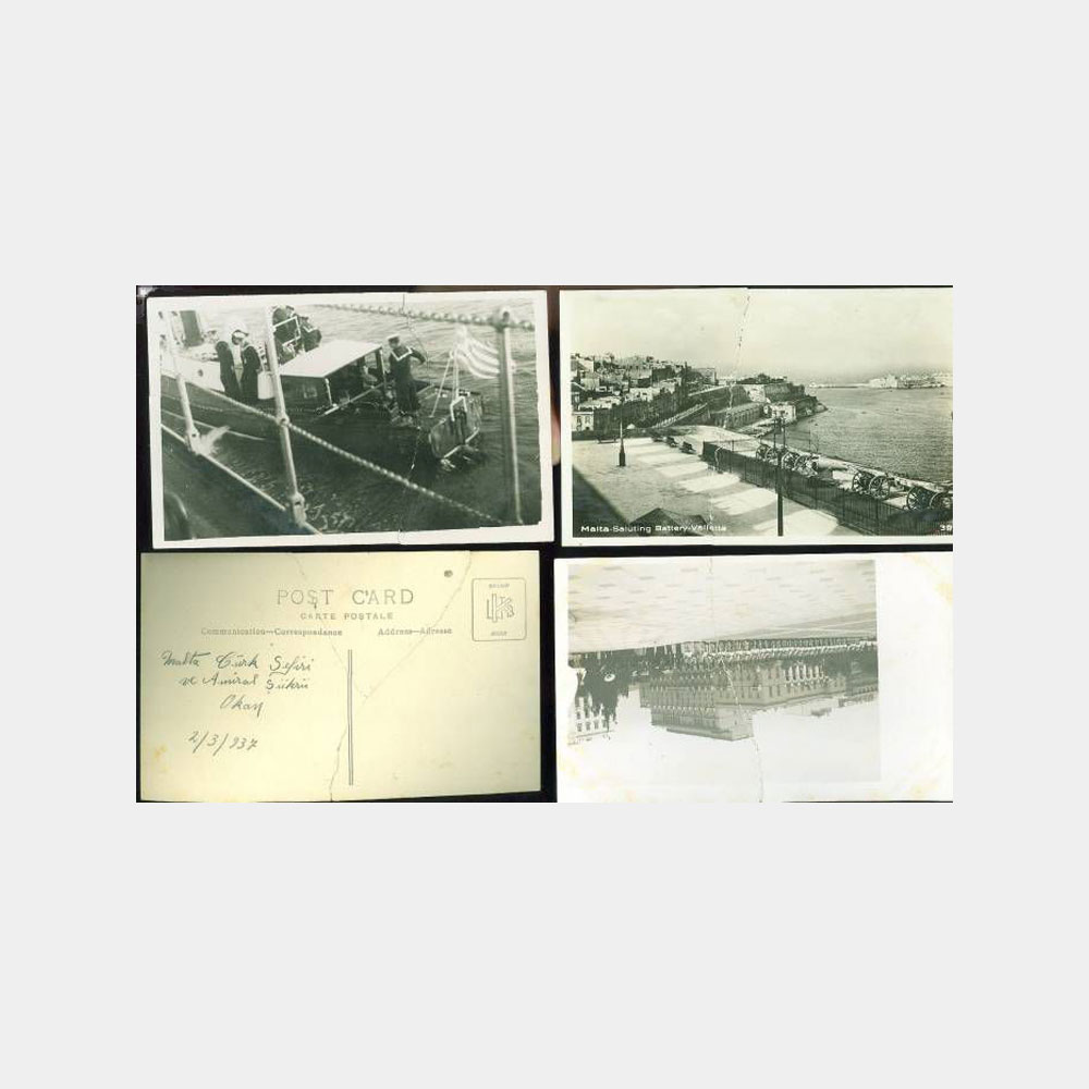 Yavuz’un Atina ve Malta seyahati ile ilgili görüntüler var, bir kısmı ortadan tamirli, bazılarının arkası yazılı ve tarihli.