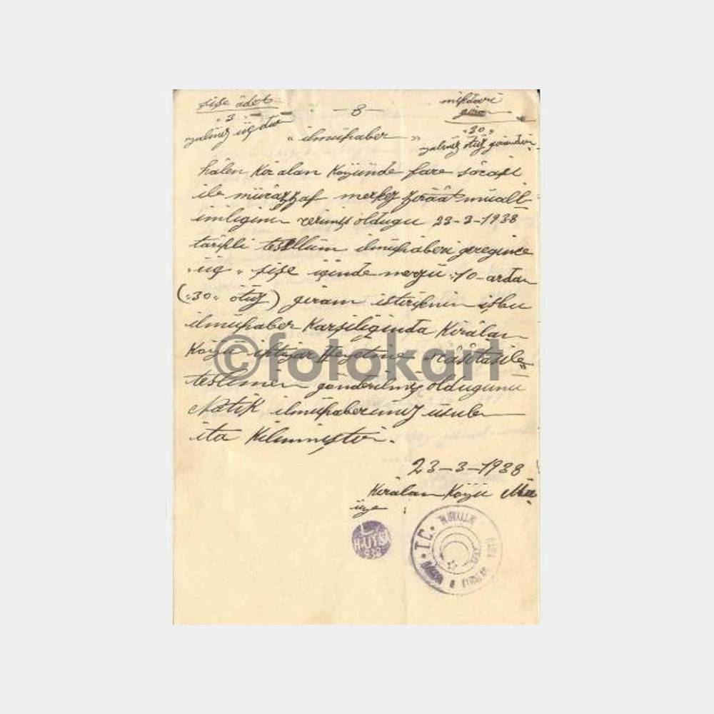 8 sayfa halinde, üzerinde muhtarlık idare heyetleri ve kişilerin madeni el müdürleri açısından ilginç belgeler