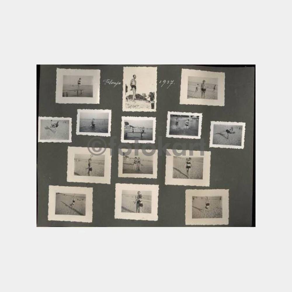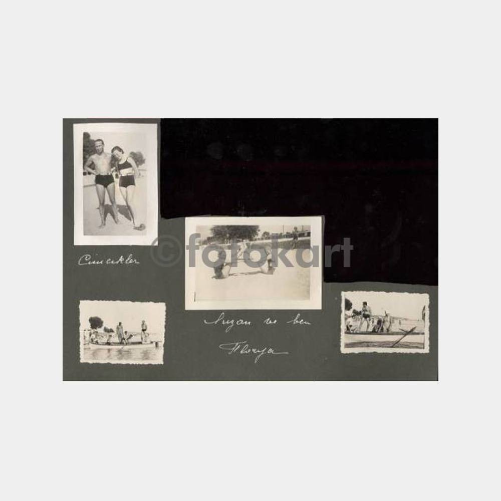 Bir albüm sayfasına yapışık durumda, 6 x 4,5 cm ebadında küçük fotoğraflar.