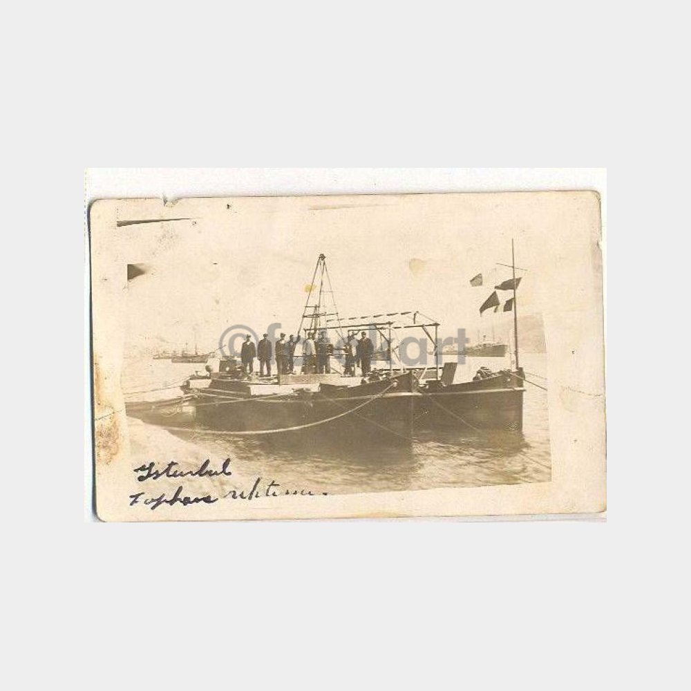 Albümden çıkma bir fotoğraf. Bir mavna, vinç vb. görüntüler var. Arka planda gemiler görülüyor.