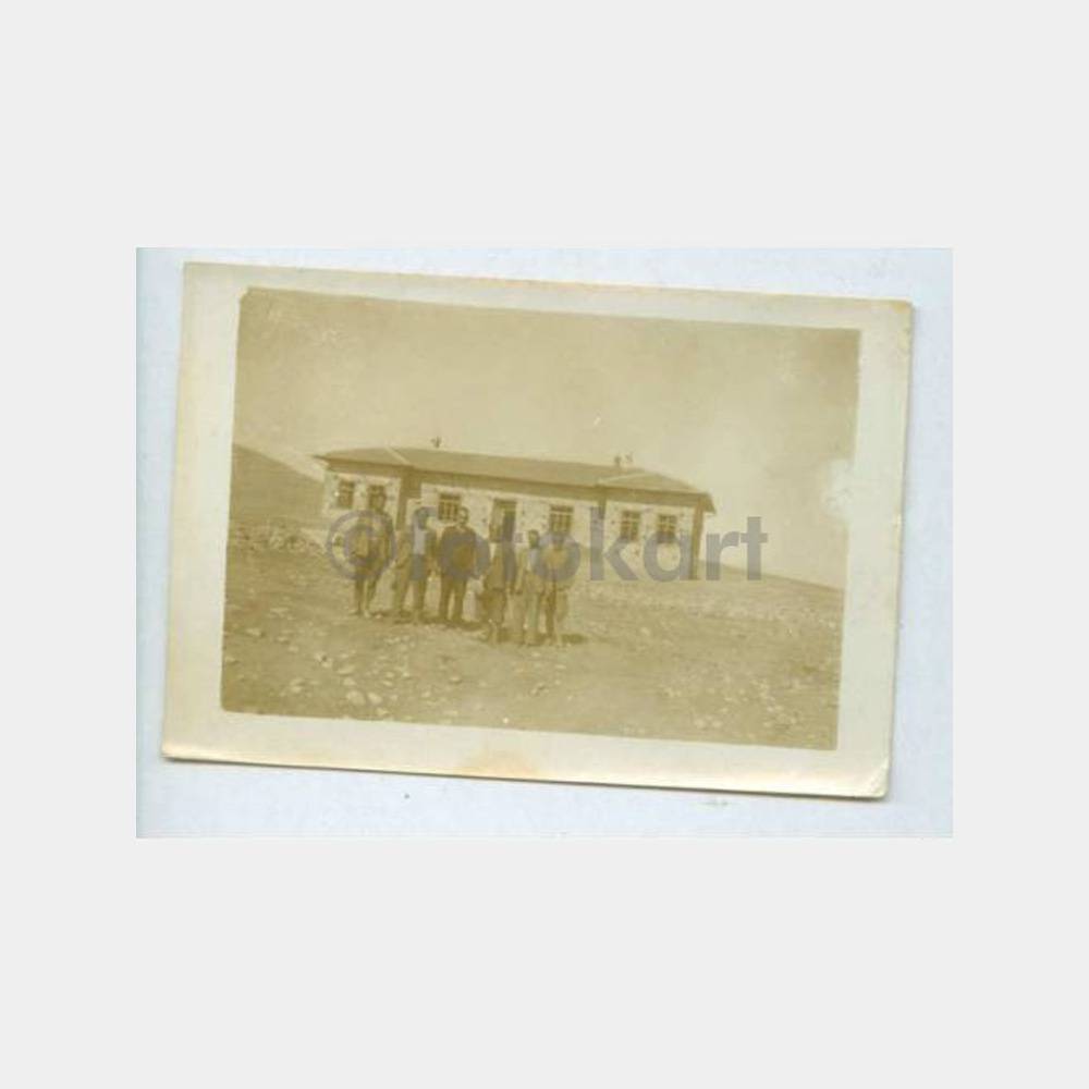 6 x 9 cm ebadında arkası yazılı albüm fotoğraf, arkasında dört ay önce Turgut nahiye merkezinde inşaatına başlanan yatılı ilkokul binasının bugünkü şekli 23.10.1937 Niyazi