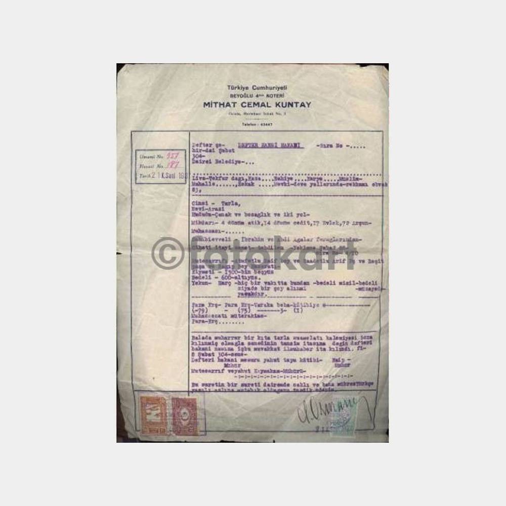 Beyoğlu 14. Noteri, Mithat Cemal Kuntay, liva tekfurdağı,  karyesi müslim, mevki, deve yollarında, hakani arazi