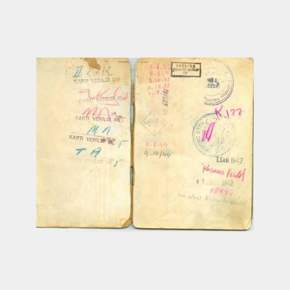 İçinde çok sayıda sosyal yardım damgaları mevcut, kömür vs, kondüsyon haliyle