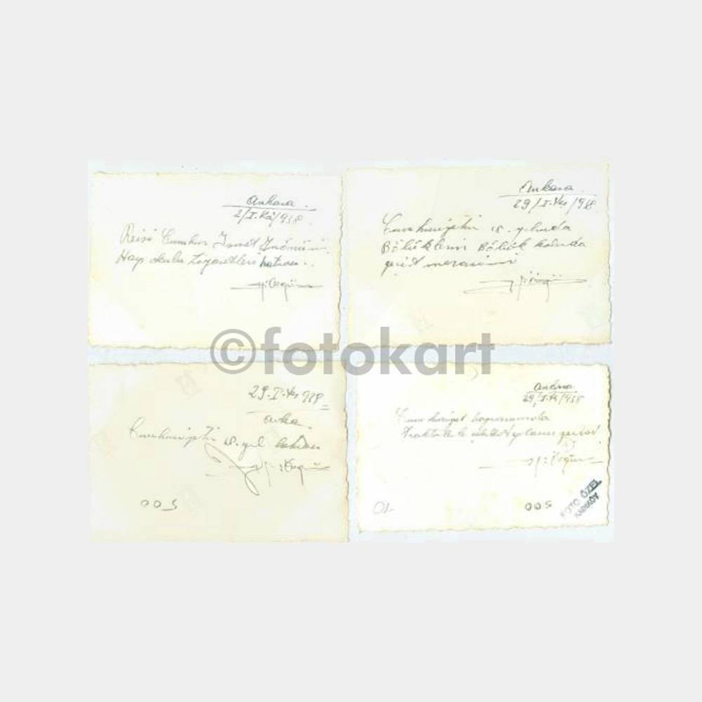 9 x 6 cm ebadında, hepsinin arkası yazılı albüm fotoğrafları. 16 adet. Tanklar, motorsikletler, uçaklar, paraşütler ve tüm tören belgeselleri. Ata’mızın vefatından sadece 10 gün önce yapılan törenlerde İnönü bulunmuştu.