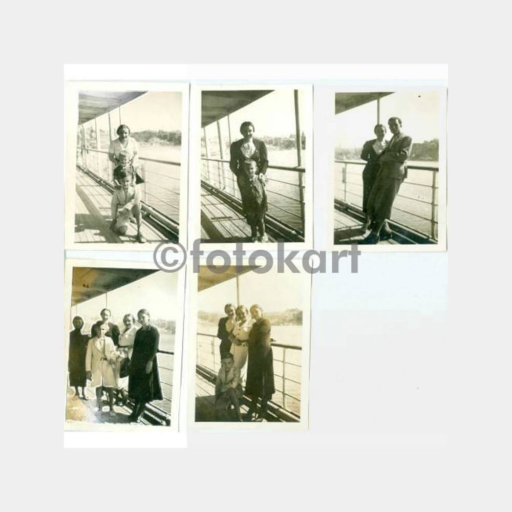 9 x 6 cm ebadında arkası bir adedi yazılı 5 adet albümden çıkma fotoğraflar, Erzurum vapuru ile Antalya’dan Alanya’ya nikahtan sonra dönüş yazılı