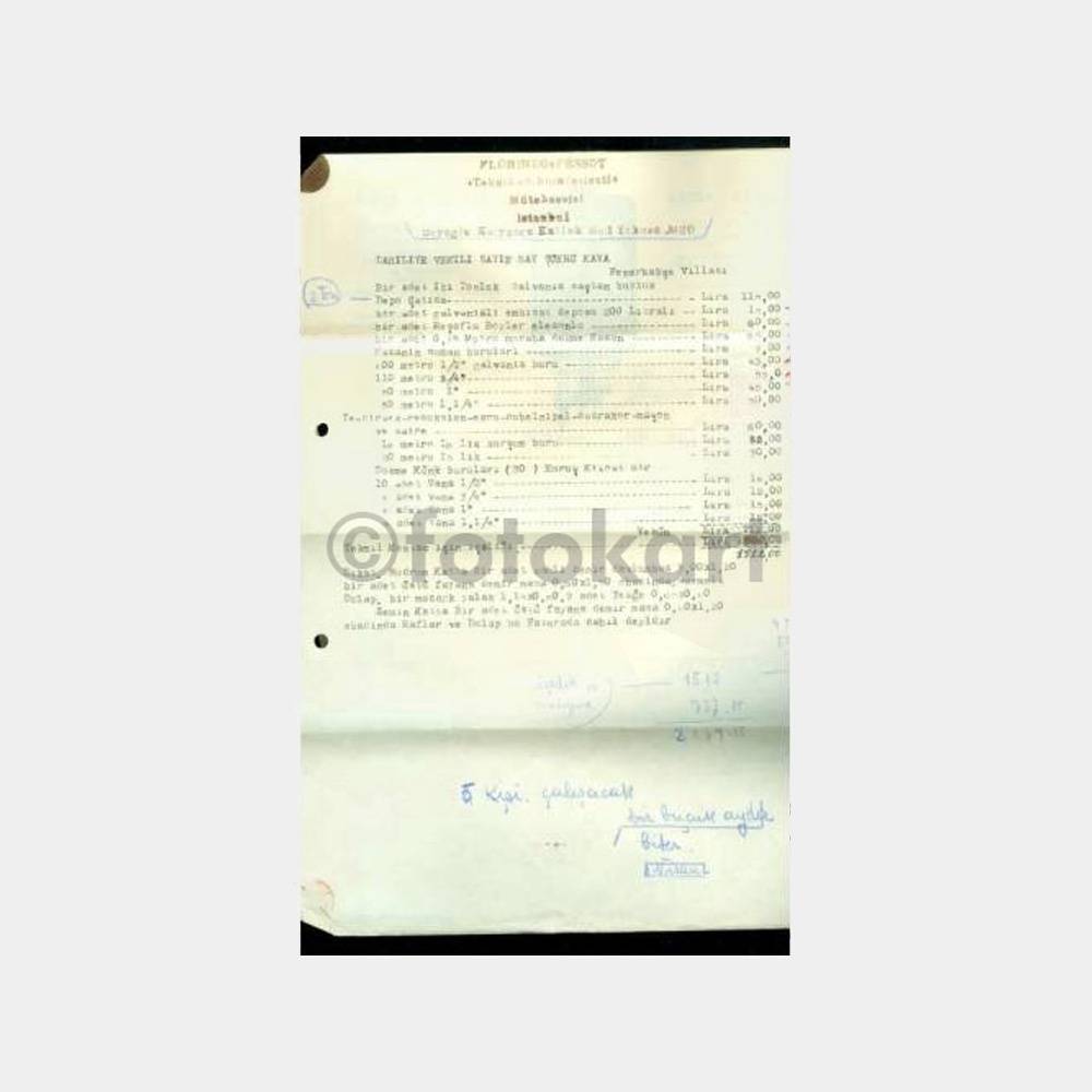 Dahiliye vekili Şükrü Kaya’nın Fenerbahçe’deki evinin yapımı ile ilgili inşaata ait faturalar 5 adet