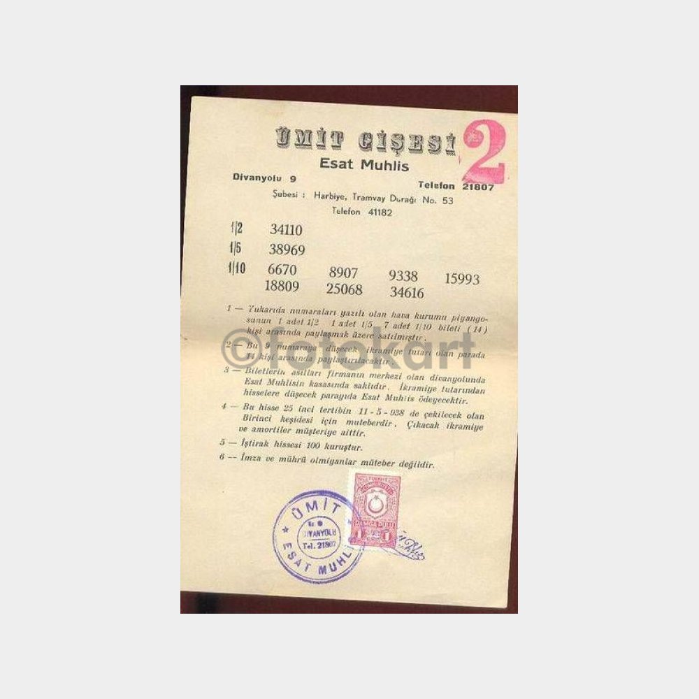 Kategoriler: Eski Belge-Efemera, Koleksiyon, Piyango