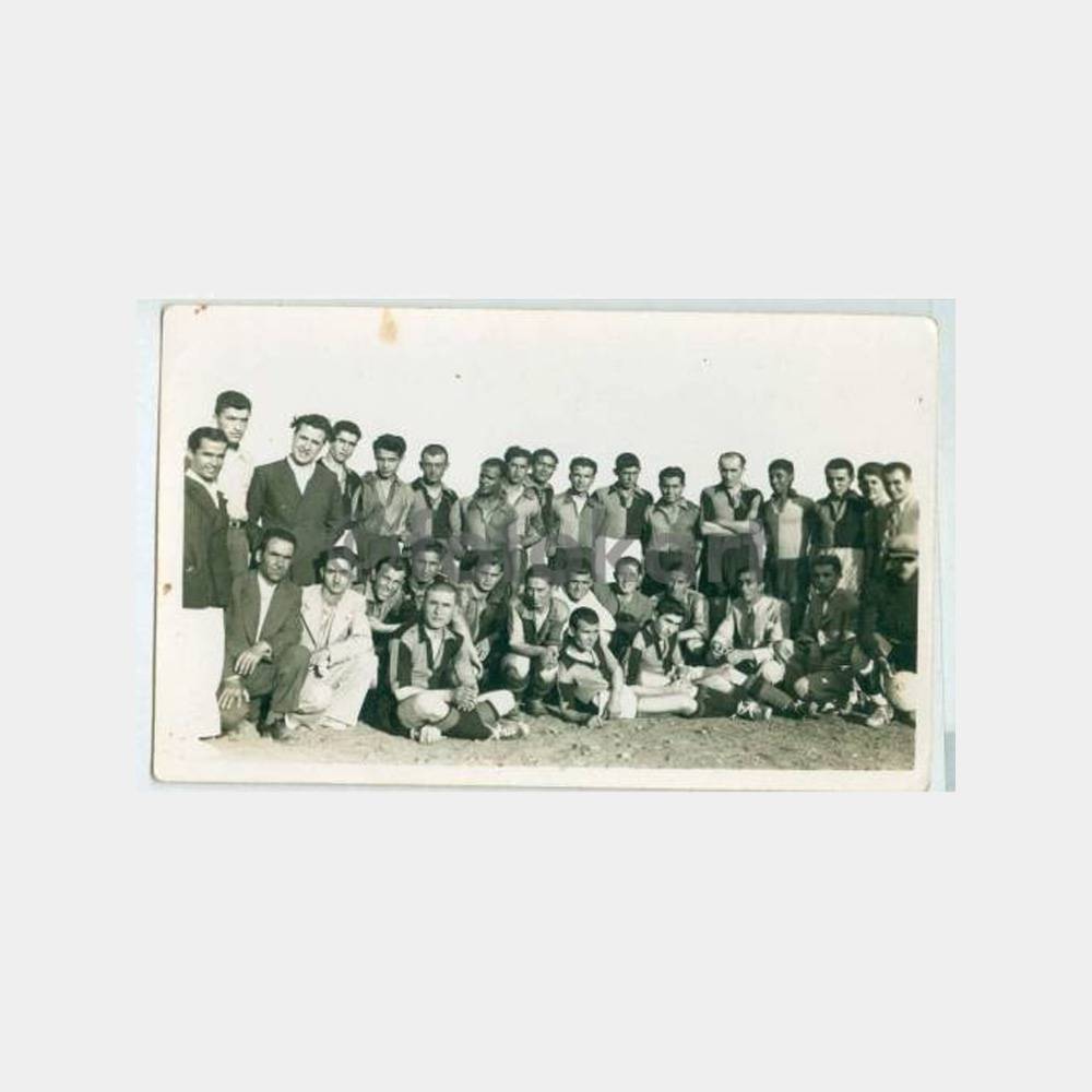 14 x 9 cm ebadında arkası yazılı foto, stüdyo foto fahri, Uşak damgası altında 23. 07. 1938 de Uşak’ta yapılan maçta Manisa Yıldırımspor futbol takımı ile Uşak muhtelit takımı oyuncuları görünüşü