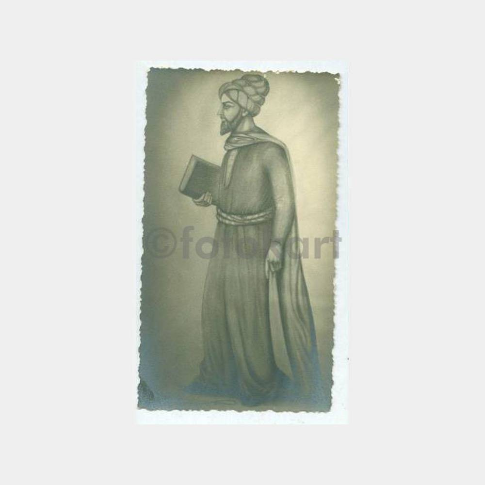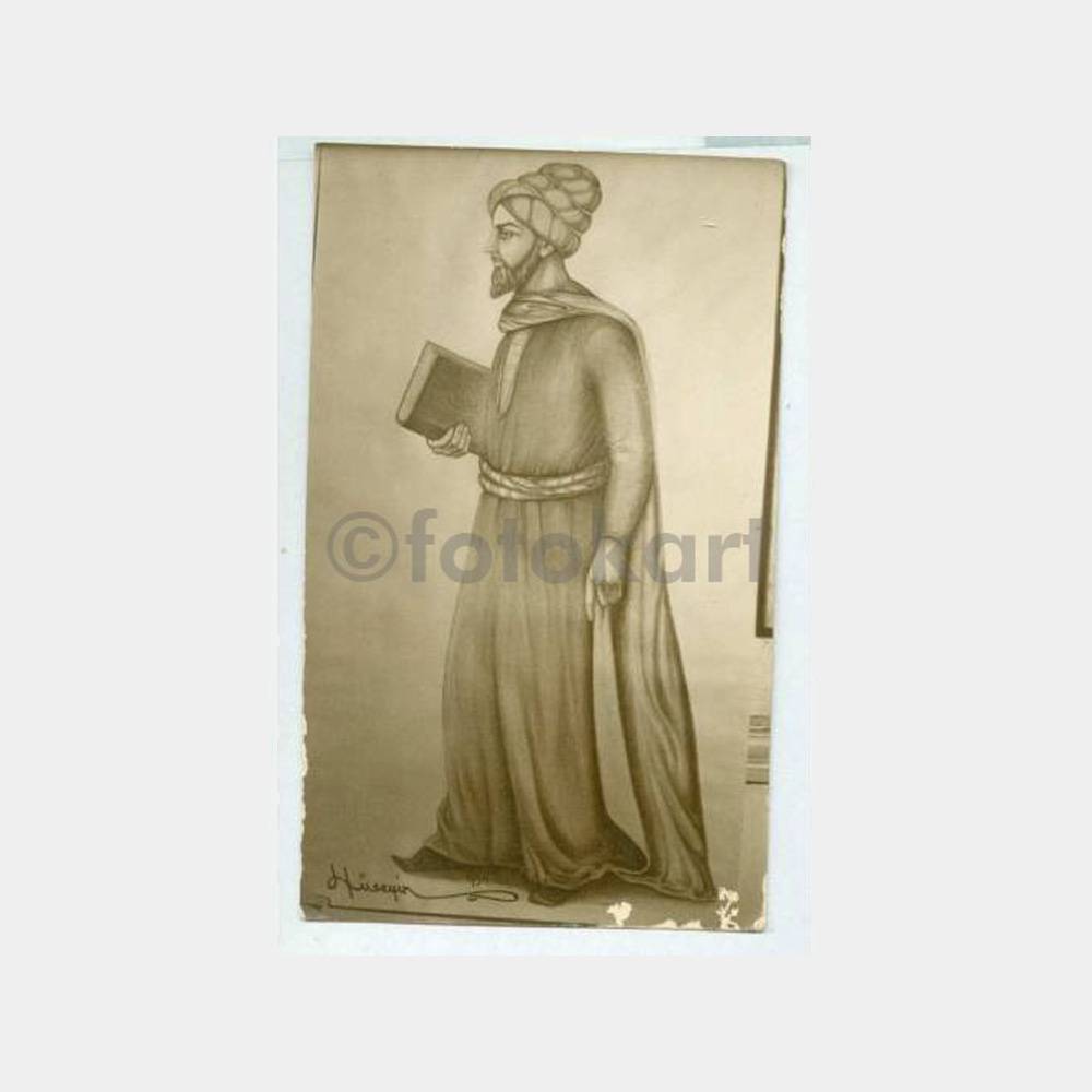 1939 Hüseyin İmzalı Minyatür Alim Çizgi Fotoğraf