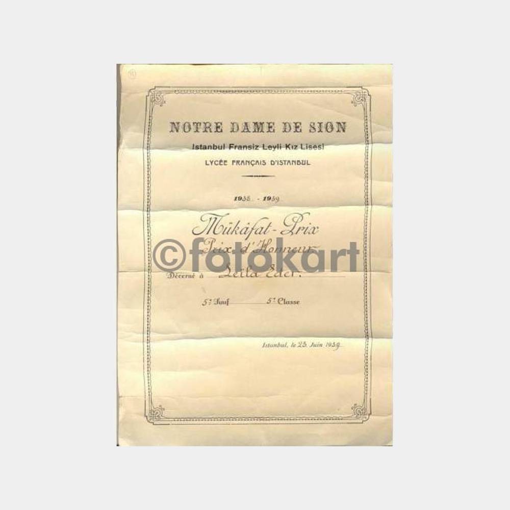 Okul başarı belgesi, İstanbul Harbiye fransız kız lisesi