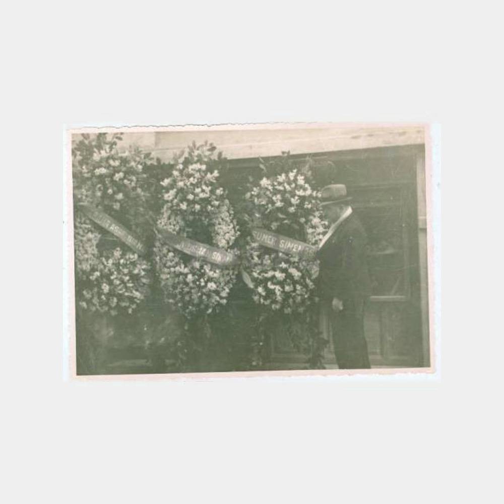 Fotoğrafta çelenkte babamıza Osman Sirman-Asaf Sirman 01.02.1939- Sümer Sineması yazılı. Diğer fotoğrafta Saray sineması çelengi. Sinema tarihimiz açısından değerli belgesel.