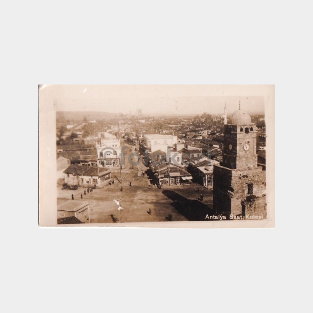 1940 Antalya Saat Kulesi Tebrik Fotoğraf