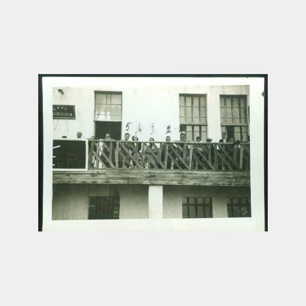 9,5 x 6,5 cm ebadında. arkası yazılı fotoğraf. 1-Eski memur Hakkı Bey 2-Posta müdürü Lütfü Bey 3-Posta müdürü eşi Şerif Hanım 4-Ben 5-Hikmet Karaaydın Ablacığım size Ayancıklılar selam ve hürmetlerini sunarlar.