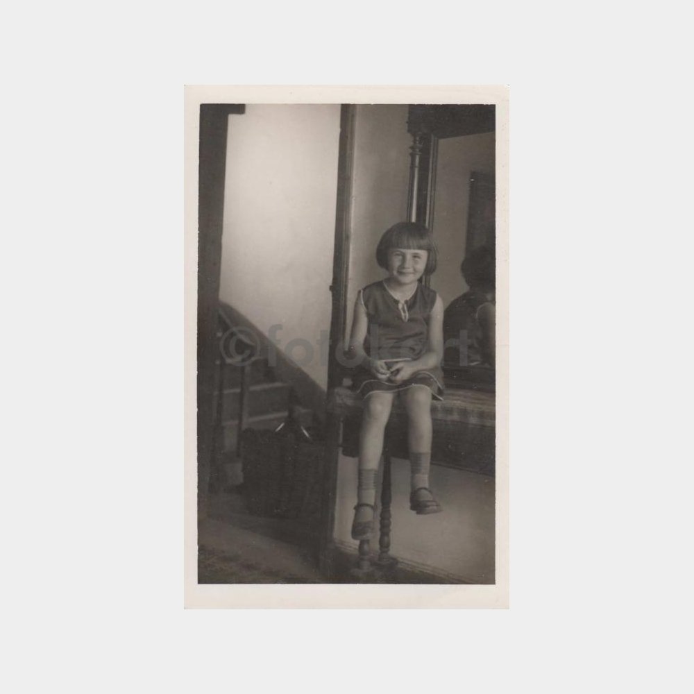 1940 Ayna Önünde Sevimli Kız Çocuk Fotoğraf