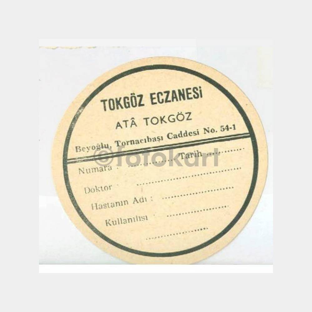 1940 Beyoğlu Tokgöz Eczanesi Şişe Etiketi