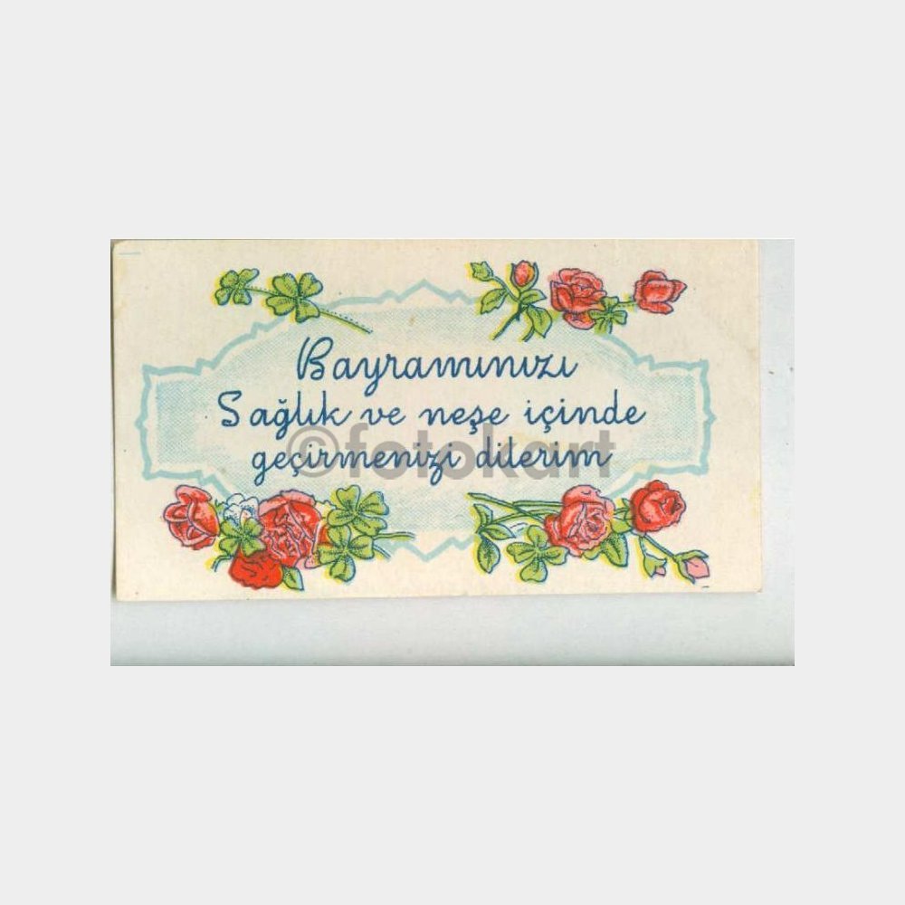 Kondisyonu temiz, arkası yazılı tebrik kartı.