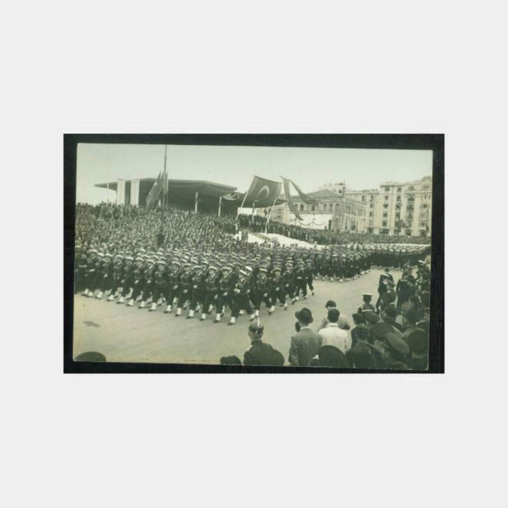 Arkası yazılı. 9 x 14 cm ebadında, deniz harp okulu ve deniz lisesi. Taksim ‘de 29 Ekim 1940 tören geçişi görünüşü.