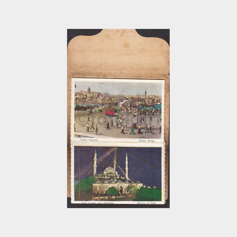 8 x 11 cm ebadında, içinde 10 adet İstanbul manzarası bulunan birbirine katlamalı albüm. Koleksiyon amaçlı.