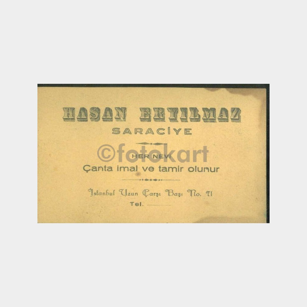 1940 İstanbul Uzunçarşı Saraciye, işyeri kartı. Arkası boş durumda.