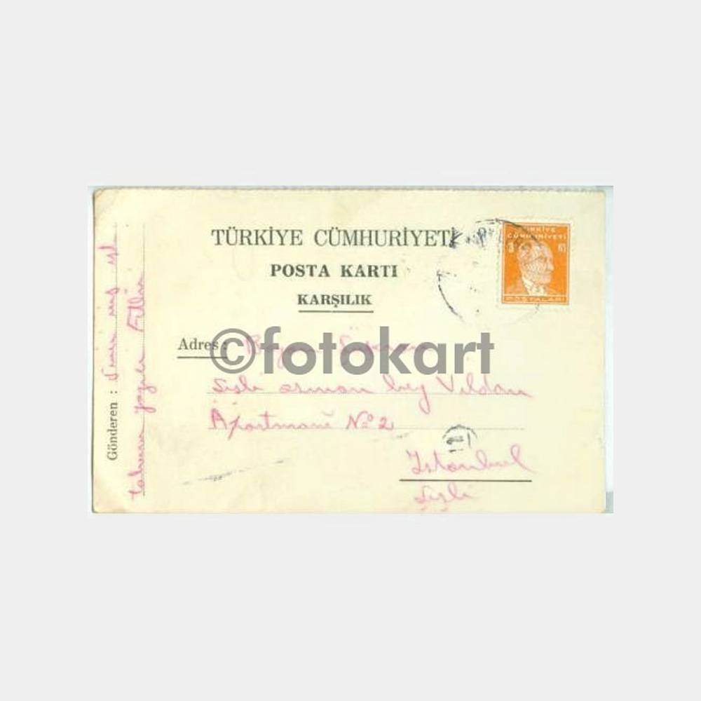 Ön yüzü gönderici. 5. takım yazıcı askeri adres, varış Şişli Osmanbey adresli arkası yazılı kart antiye
