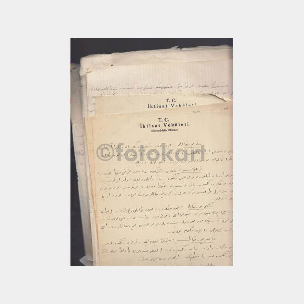 22 x 32 cm ebadında, koleksiyon amaçlı eski kağıtlara yazılmış notlar. 50 sayfa kadar var.