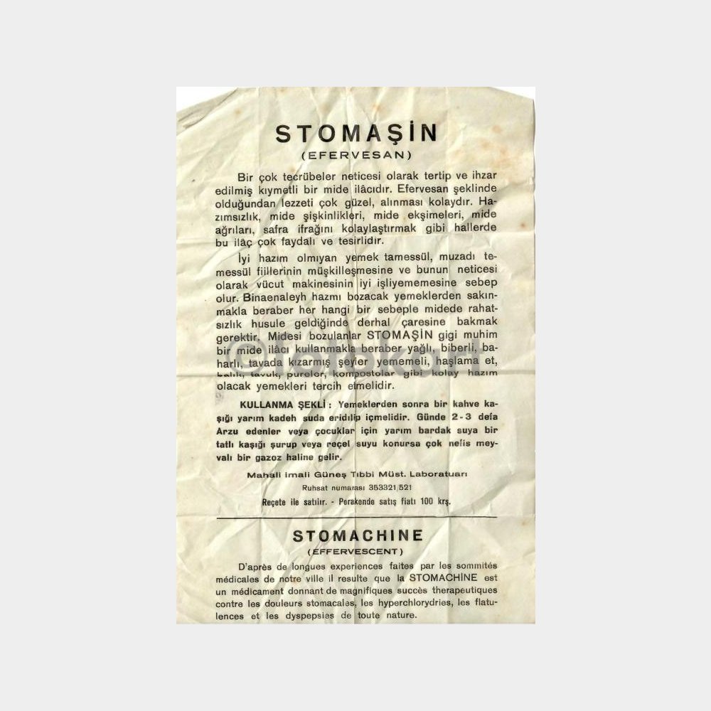 “1940 Stomaşin İlaç Prospektüsü” için yorum yapan ilk kişi siz olun