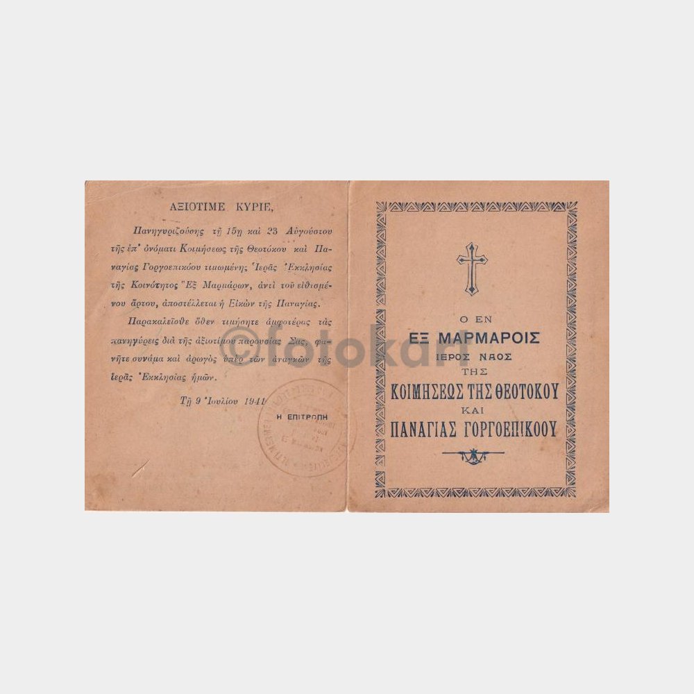 1941 İstanbul Altımermer Panayia Rum Ortodoks Kilisesi Programı Kartı