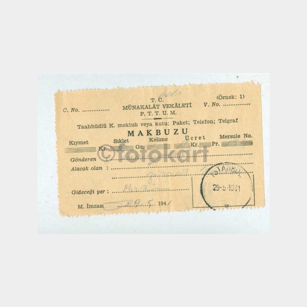 “1941 İstanbul Damgalı Taahhütlü Makbuzu” için yorum yapan ilk kişi siz olun