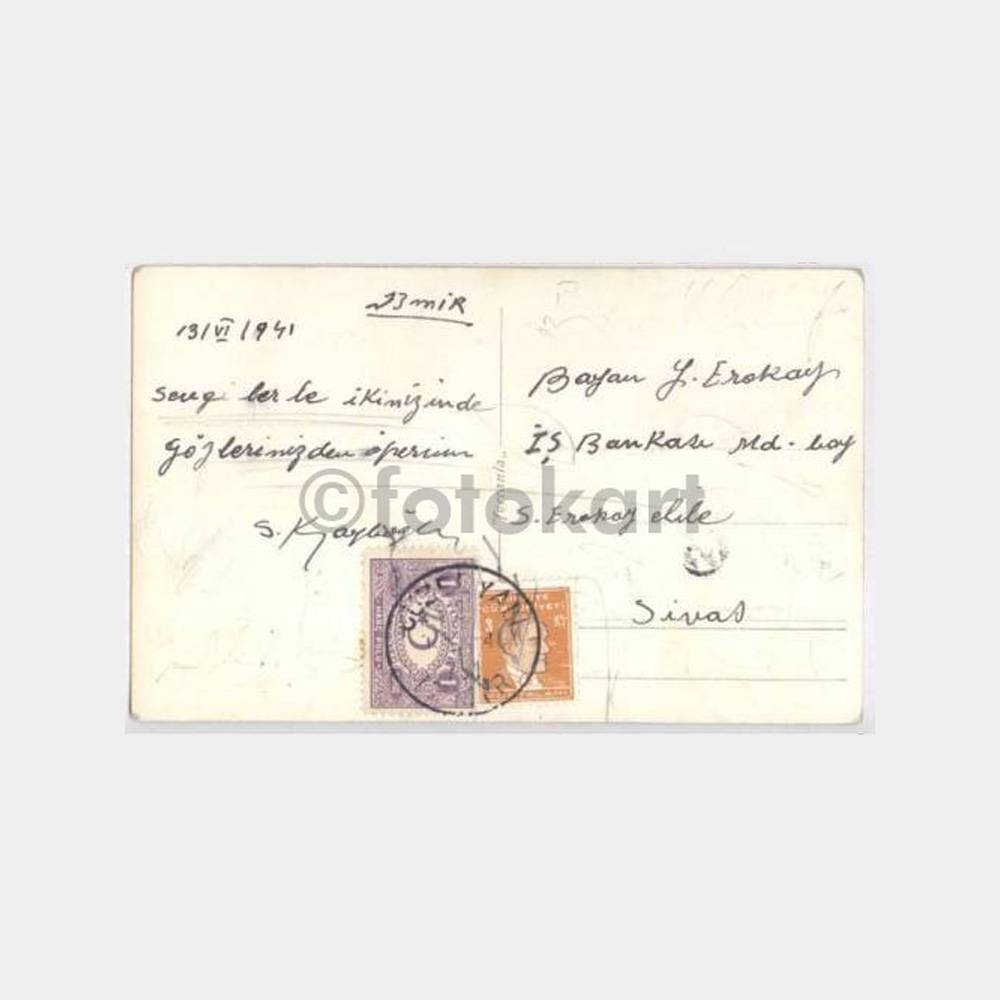 9 x 14 cm ebadında, nadir, arkası Güzelyalı damgalı kartpostal.
