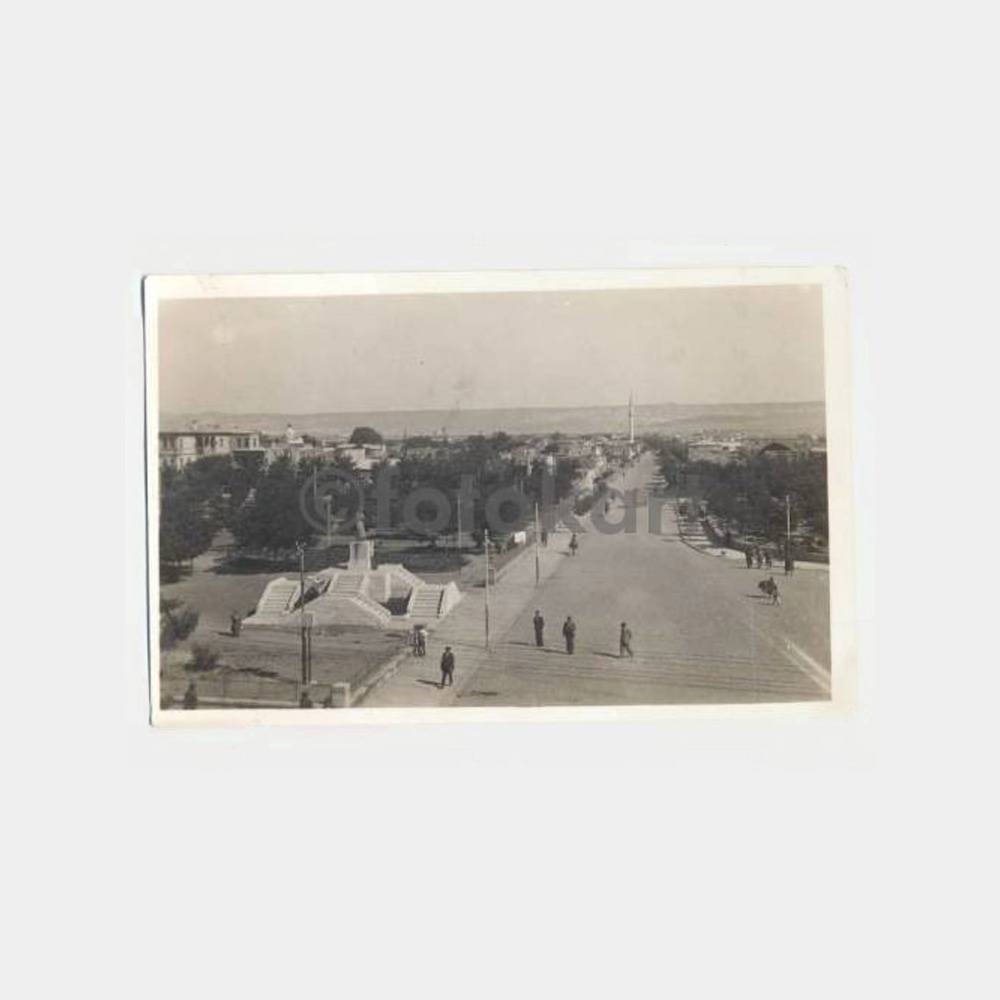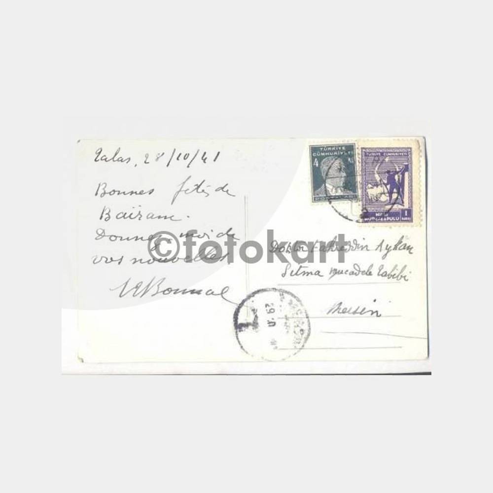 Arkası Talas 28.10.1941 tarihli. Kayseri’den Mersin’e gönderilmiş, değişik bir görüntü. Ata anıtı fotokart.